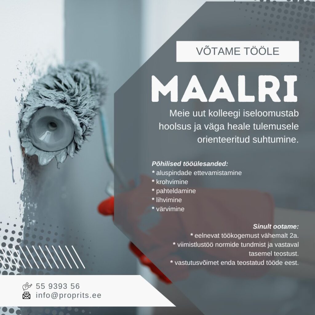 Tööülesanded: Erinevate metallkonstruktsioonide ja -toodete pritsimine/puhastamine liivaga. Nõuded kandidaadile: Töökogemus sarnasel ametikohal vähemalt 1 aasta arvutioskus algtase Tuleb kasuks töökogemus metallitööstuses. Füüsiline vastupidavus. Eesti või vene keele oskus Omalt poolt pakume: Motiveerivat töötasupaketti. Vajalikke tööriideid ja kvaliteetseid töövahendeid. Pakume töötajatele transpordi võimalust Jõhvist, Kohtla-Järvelt, Sillamäelt, Narvast. Huvitavat ja vaheldusrikast tööd ettevõttes. Kaasaegseid töötingimusi ja turvalist