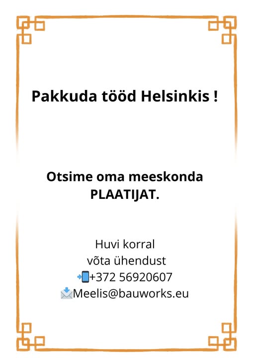Bauworks OÜ pakub tööd plaatijale Helsingis