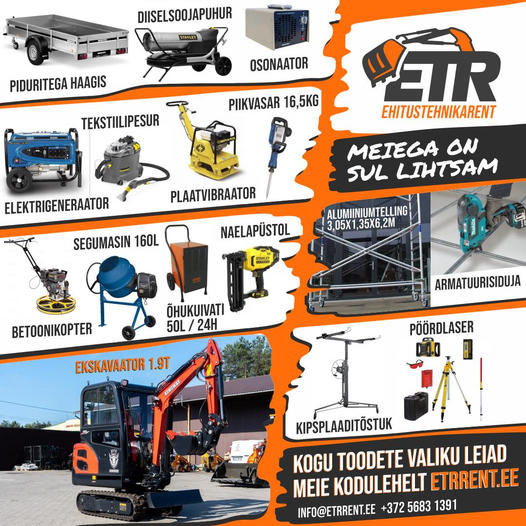 Lisainfo kuulutuses antud telefoninumbril või kirjutage info@etrrent.ee