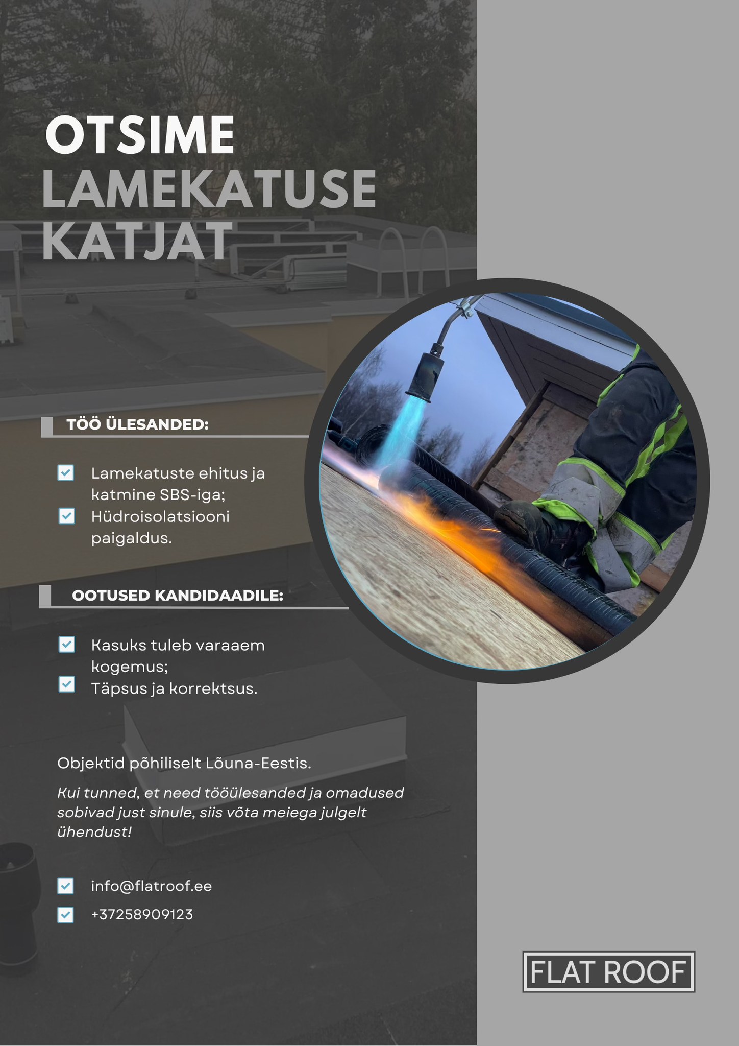 Kui sul on varasem kogemus lamekatuste ehituse ja SBS töödega, täpsus ning korrektsus, siis oled just sina see, keda otsime!
