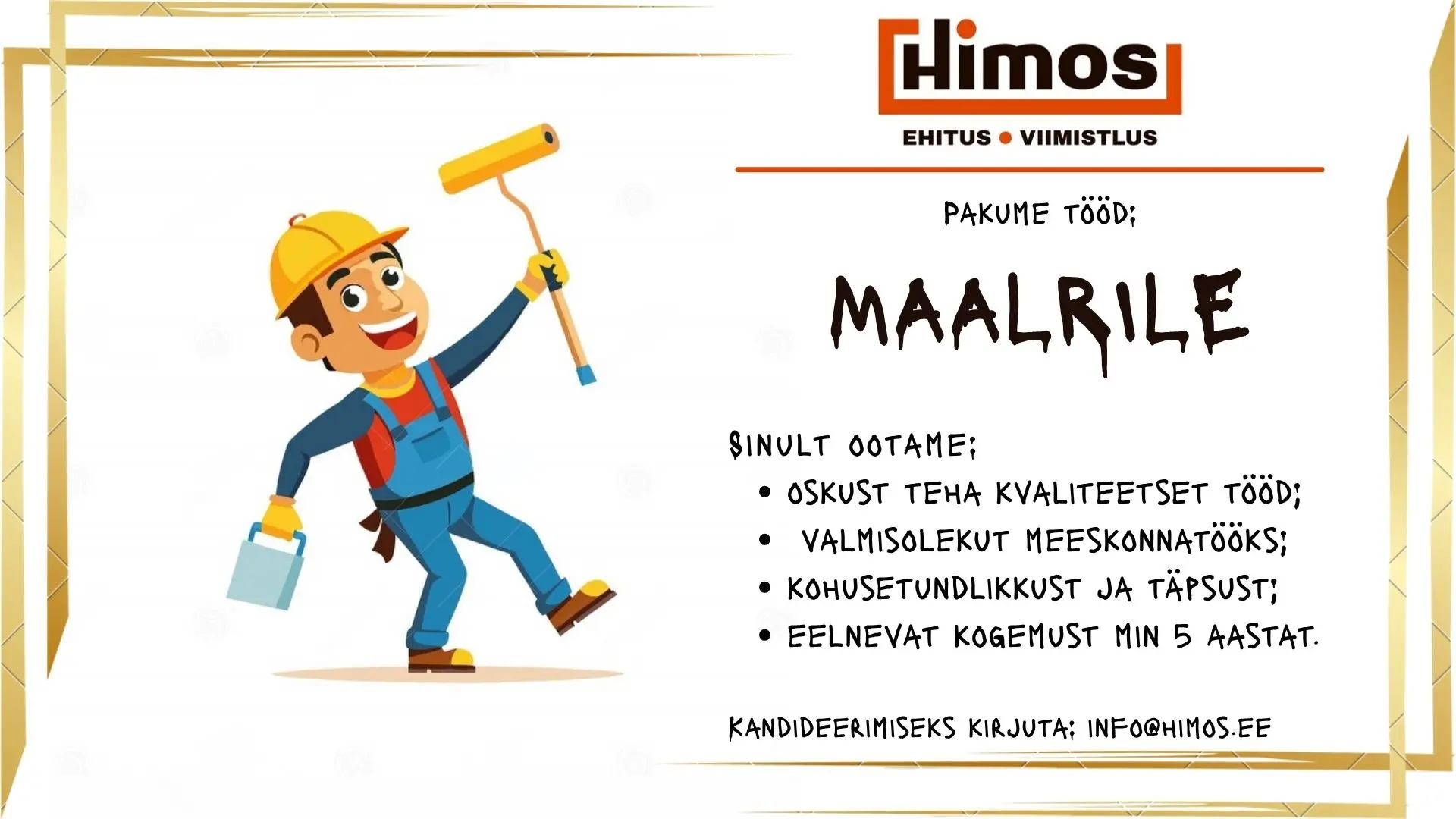 Tööpakkumine maaler-krohvijale Tartus – Himos Ehitus OÜ