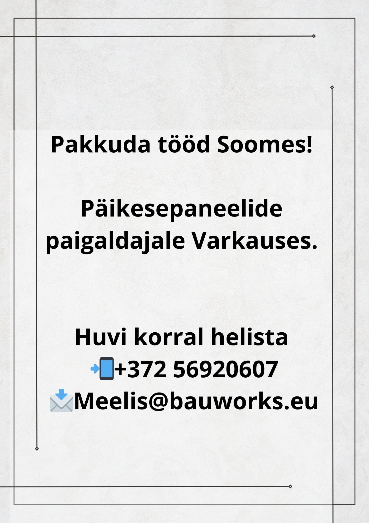 Tööpakkumine päikesepaneelide paigaldajale Soomes