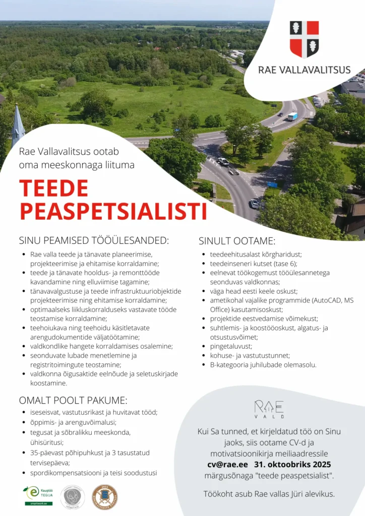 Rae Vallavalitsus pakub tööd teede peaspetsiialistile