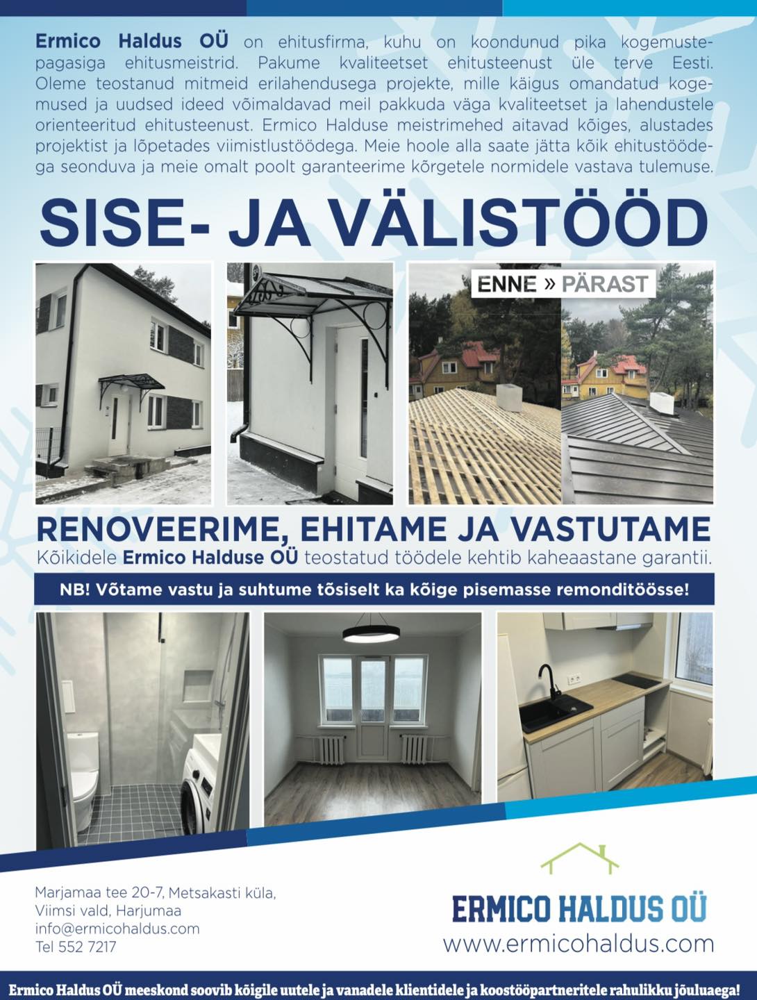 Talvele vastu hooldus-, ehitus-, ja viimistlustöödega nii sees kui väljas.