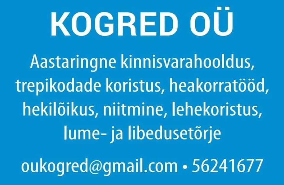 Lisainfo kuulutuses antud telefoninumbrilt või kirjutage oukogred@gmail.com