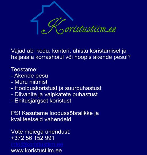 Lisainfo kuulutuses antud telefoninumbril või kirjutage info@koristustiim.ee