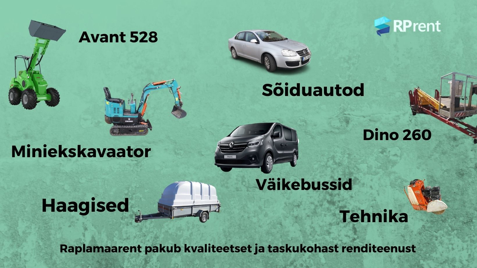 Meilt saad rentida sõiduautosid, väikebusse, kaubikuid, ehitusseadmeid ning tellinguid.